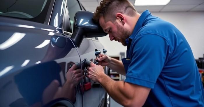 - If glue residue remains, remove it with alcohol. Where necessary, perform ultra-light wet sanding only on dust nibs or minor clear imperfections, then polish. Avoid cutting factory orange peel beyond the surrounding texture; the goal is car exterior repair that looks OEM.